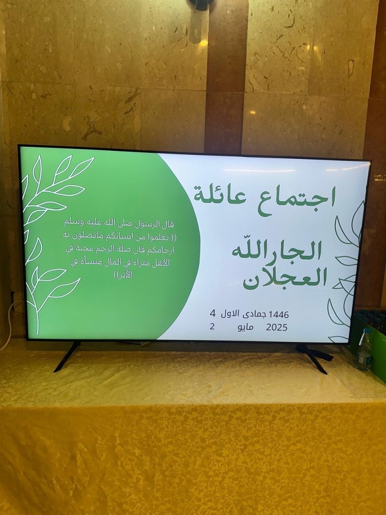 في اجتماع الأسرة، أسرة الجارالله العجلان ال ابوعليان تجلت فيه أسمى معاني الترابط والتآزر، فكل فرد هو جزء من الآخر، وما يجمعنا من حب ووفاء هو ما يجعل من أسرتنا ملاذاً آمناً وذكرياتنا جسراً إلى المستقبل.”
